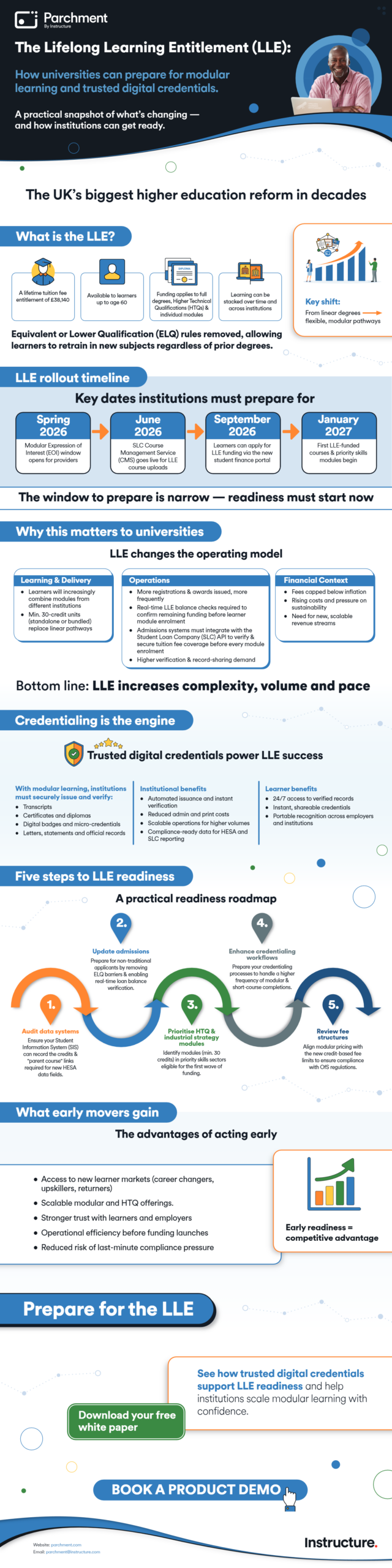 Is your institution ready for the transition? Download our infographic, The Lifelong Learning Entitlement: How Universities Can Prepare, for a practical snapshot of the upcoming changes and a 5-step roadmap to success.